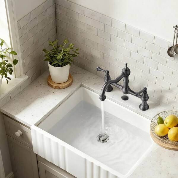Double Handle Bridge Kitchen Faucet in Oil Rubbed Bronze