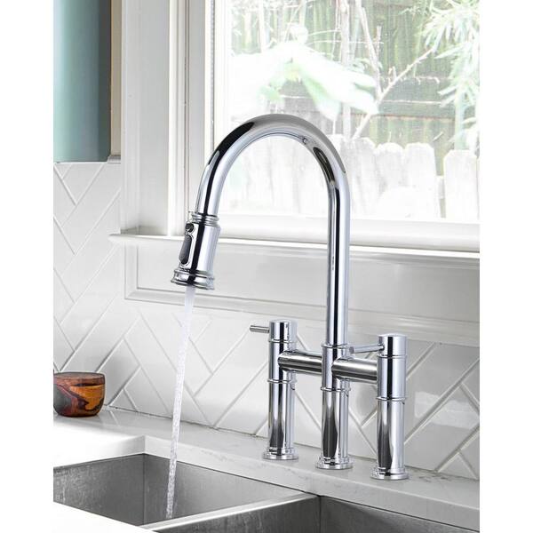 Double Handle Bridge Kitchen Faucet in Polished Chrome