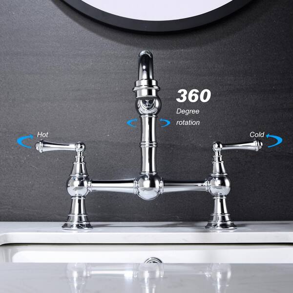 Double Handle Bridge Kitchen Faucet in Polished Chrome
