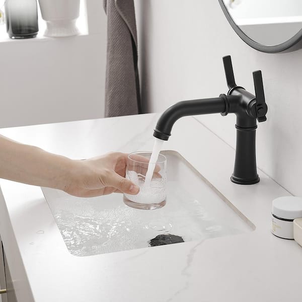 Double Handle Single Hole Bathroom Faucet with Drain Assembly in Matte Black