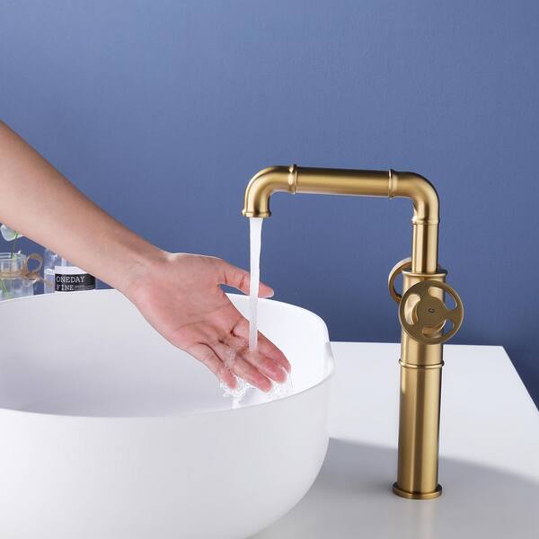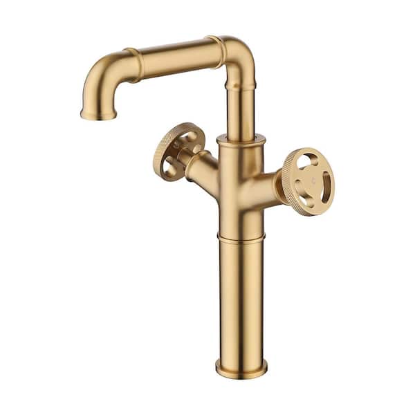 Double Handle Vessel Sink Faucet Single Hole Bathroom Faucet in Brushed Gold