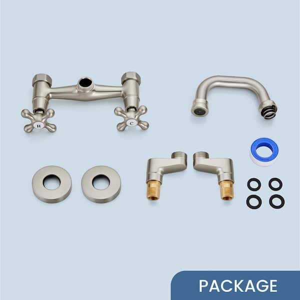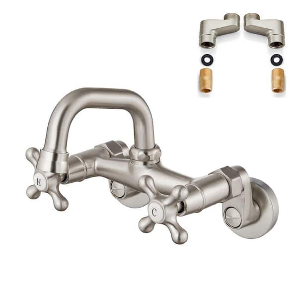 Double Handle Wall Mount Standard Kitchen Faucet in Brushed Nickel