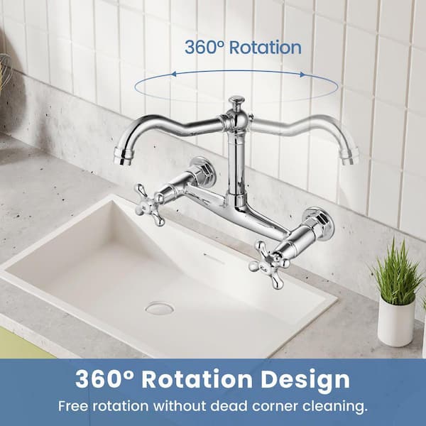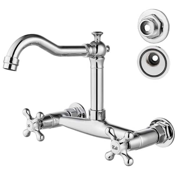 Double Handle Wall Mount Standard Kitchen Faucet in Chrome Polish