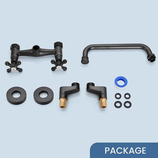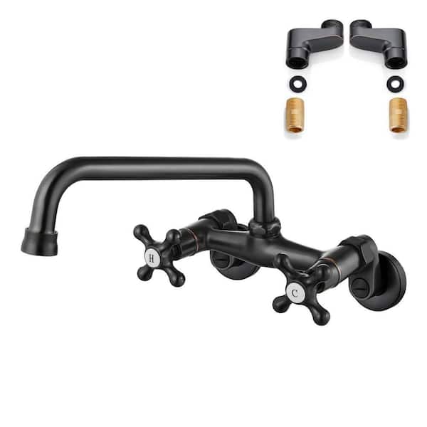 Double Handle Wall Mount Standard Kitchen Faucet in Oil Rubbed Bronze