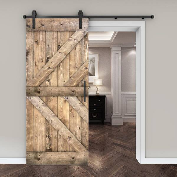 Double KL 42 in. x 84 in. Dark Walnut Finished Pine Wood Sliding Barn Door with Hardware Kit (DIY)