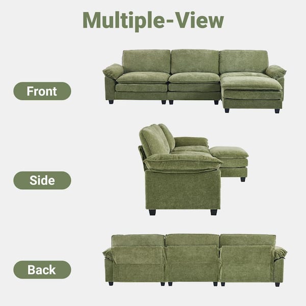 Double-Layer Cushion's Collection 120 in Wide Pillow Top Arm Chenille L-shaped Modern Sofa in. Green with Ottoman