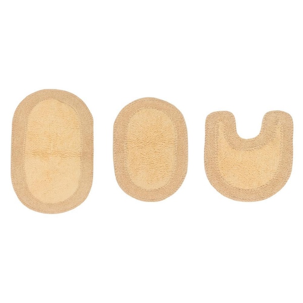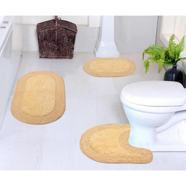 Double Ruffle Collection 100% Cotton Bath Rug, 3-Pcs Set with Contour, Butter
