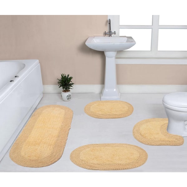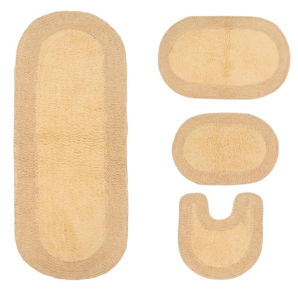 Double Ruffle Collection 100% Cotton Bath Rug, 4-Pcs Set with Contour, Butter
