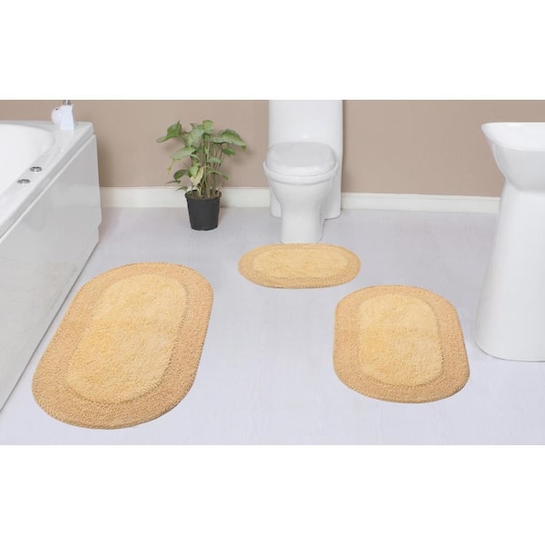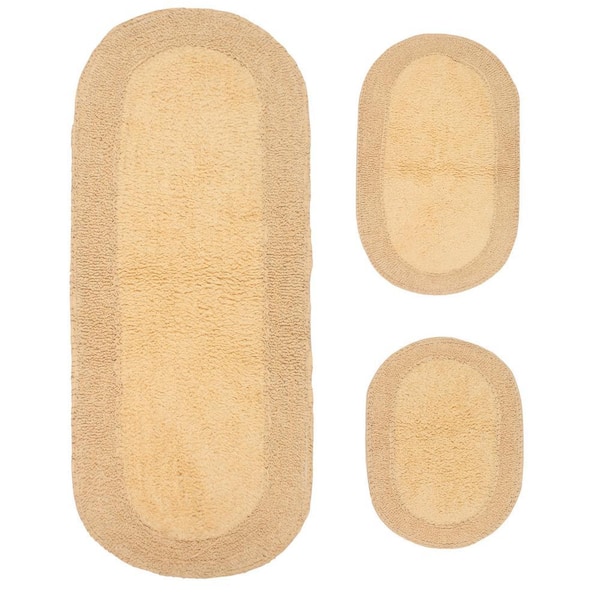 Double Ruffle Collection 100% Cotton Bath Rug Set, 3-Pcs Set with Runner, Butter