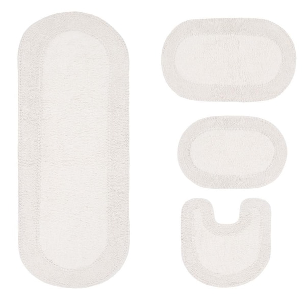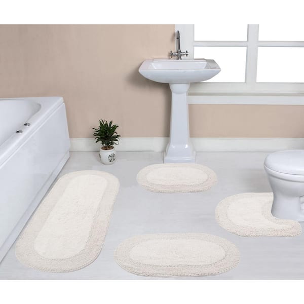 Double Ruffle Collection 100% Cotton Bath Rug Set, 4-Pcs Set with Contour, Ivory