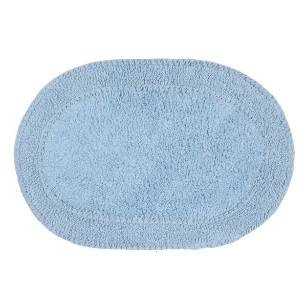 Double Ruffle Collection 100% Cotton Bath Rugs Set, 17x24 Rectangle, Blue