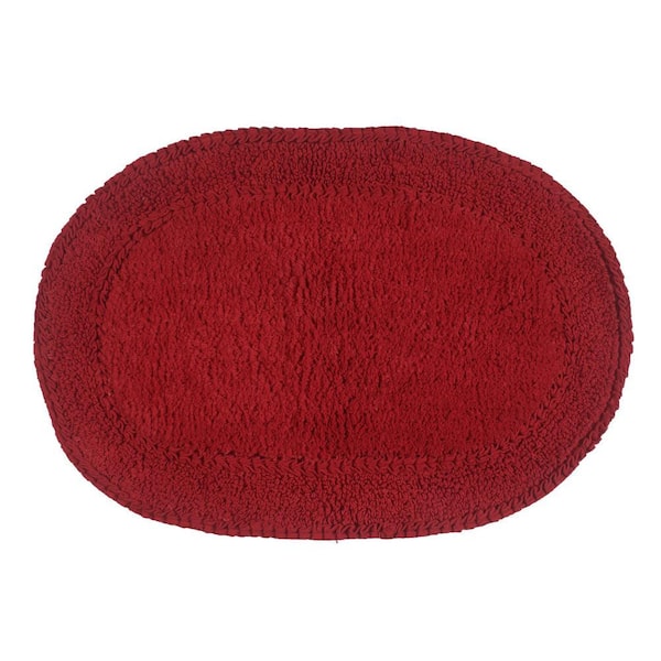 Double Ruffle Collection 100% Cotton Bath Rugs Set, 17x24 Rectangle, Red