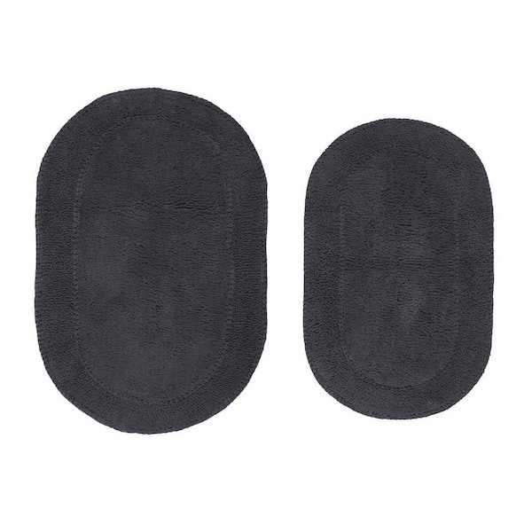 Double Ruffle Collection 100% Cotton Bath Rugs Set, 2-Piece Set(S+M), Gray