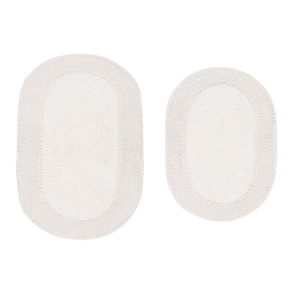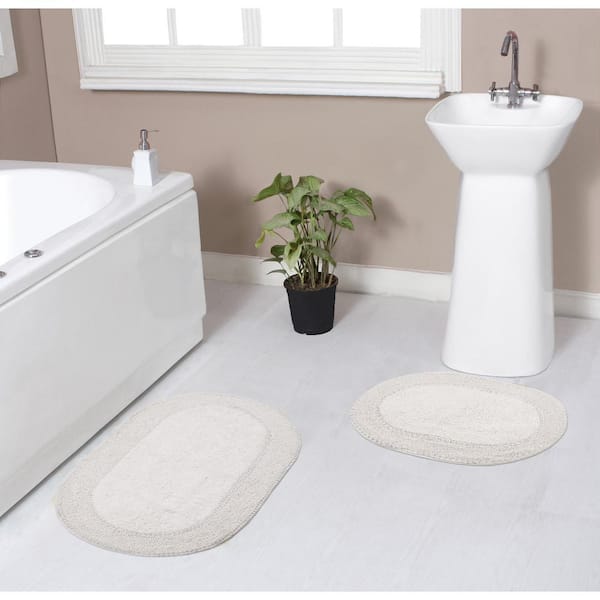 Double Ruffle Collection 100% Cotton Bath Rugs Set, 2-Piece Set(S+M), Ivory