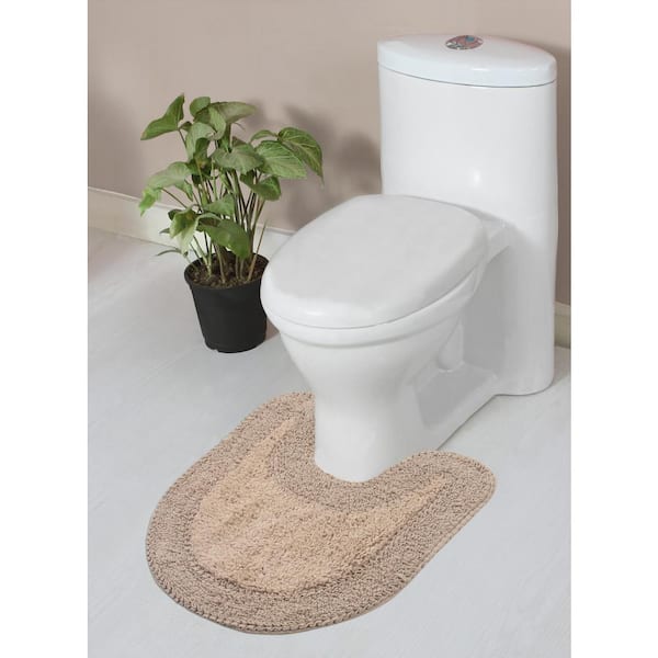Double Ruffle Collection 100% Cotton Bath Rugs Set, 20x20 Contour, Linen