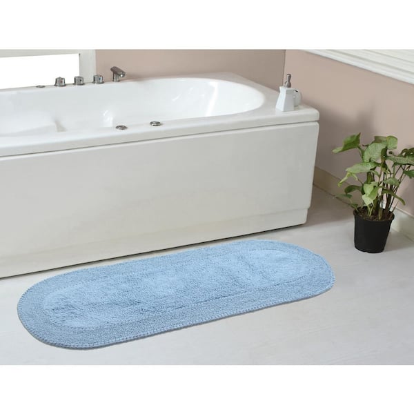 Double Ruffle Collection 100% Cotton Bath Rugs Set, 21x54 Runner, Blue