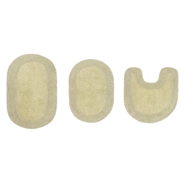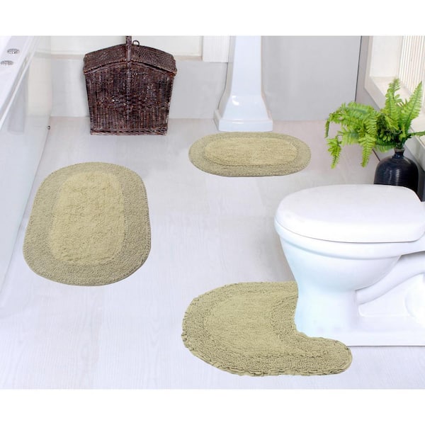 Double Ruffle Collection 100% Cotton Bath Rugs Set, 3-Pcs Set with Contour, Sage