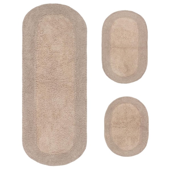 Double Ruffle Collection 100% Cotton Bath Rugs Set, 3-Pcs Set with Runner, Linen