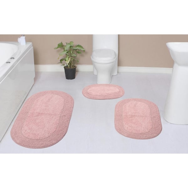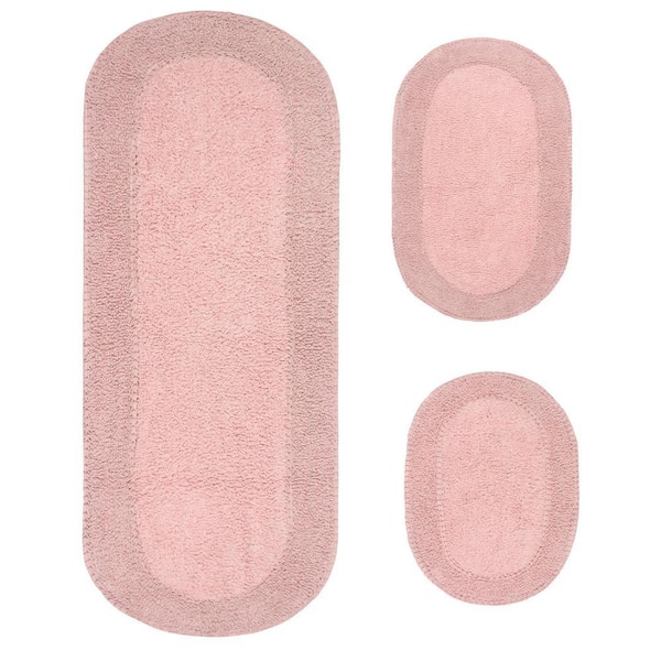 Double Ruffle Collection 100% Cotton Bath Rugs Set, 3-Pcs Set with Runner, Pink
