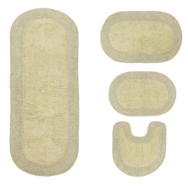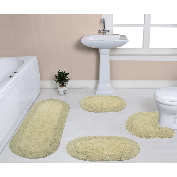 Double Ruffle Collection 100% Cotton Bath Rugs Set, 4-Pcs Set with Contour, Sage