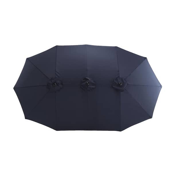 Double Sided 14.8 ft. Steel Push-Up Patio Market Umbrella in Navy Blue with Crank