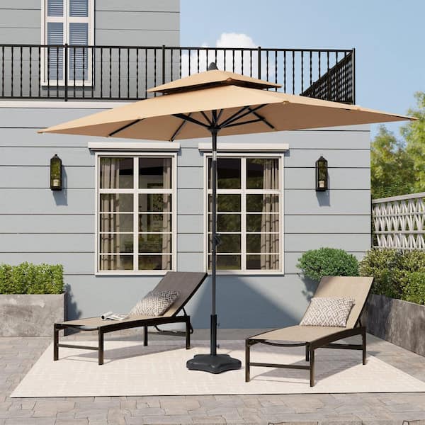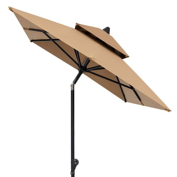 Double Top 9 ft. x 5 ft. Metal Market Tilt Patio Umbrella in Tan