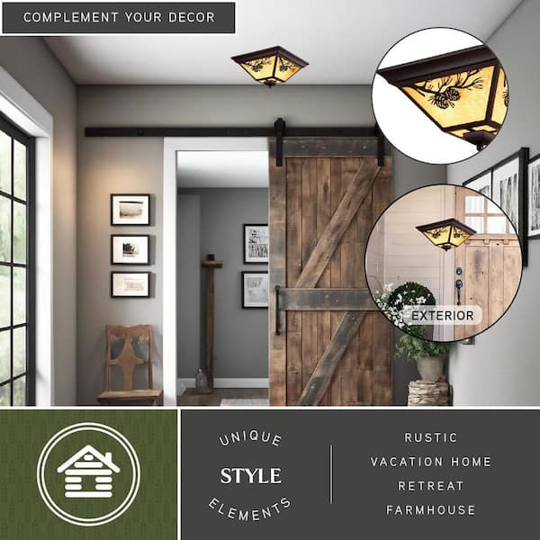 Douglas 3-Light Warm Bronze Rustic Outdoor Flush Mount Ceiling Light Pine Cone Motif Amber Glass