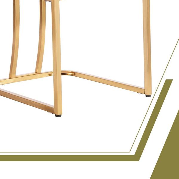 19 in. Gray Fabric Upholstered Dining Chairs with Steel Gold Legs (Set of 2)