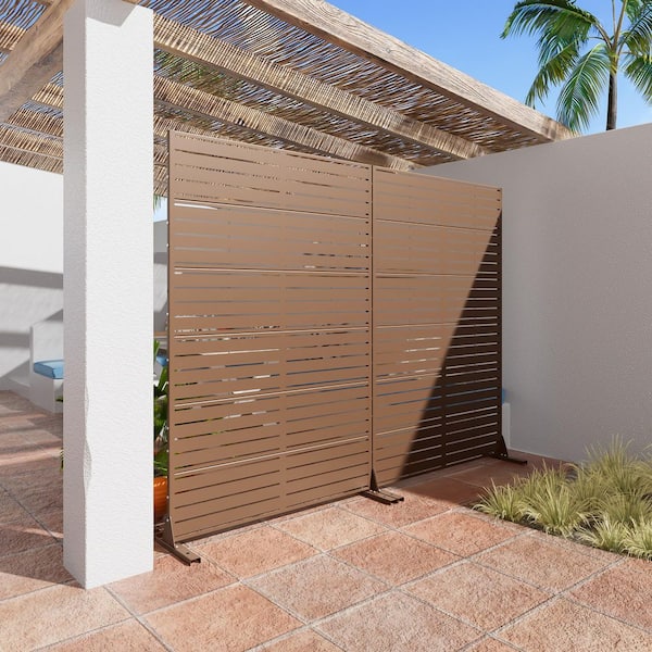 2-Piece 47 in. x 72 in. Brown Textured Metal Garden Screens Outdoor Privacy Screen