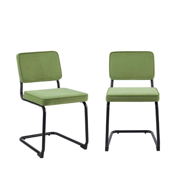 20 in. Olive-Green Dining Chairs Upholstered Metal Frame Kitchen Chairs with Black Legs, (Set of 2)