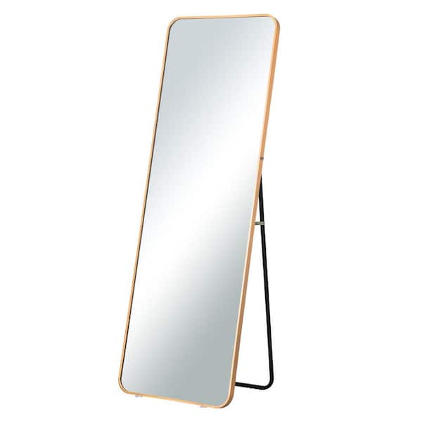 21 in. x 64 in. Modern Rectangle Round Corner Metal Framed Gold Floor Standing Mirror