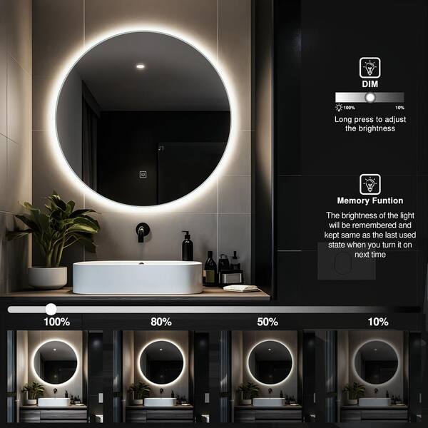 24 in. W x 24 in. H Round Frameless Dimmable Wall-Mounted LED Bathroom Vanity Mirror