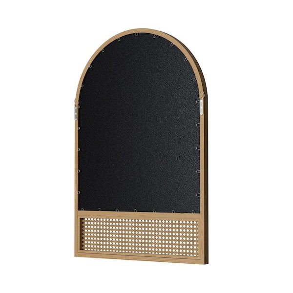 24 in. W x 36 in. H Wood Bottom Rattan Arch Hanging Mirror Glam Classic Wood Color Wall Mirror