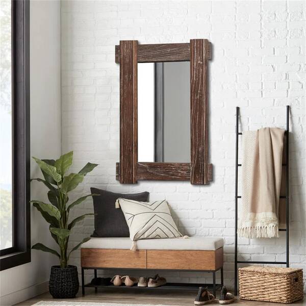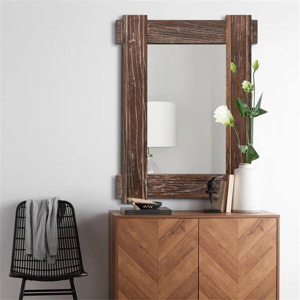 24 in. W x 36 in. H Wood Rectangle Brown Framed Mirror Wall Mounted Mirror