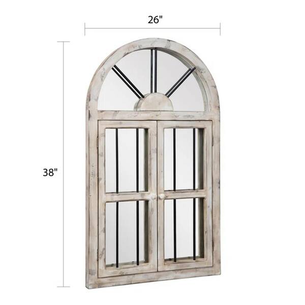 26 in. W. x 38 in. H Arched Window Framed Weathered Whitewall Mirror