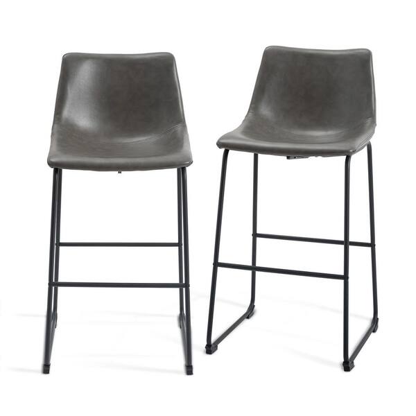 28 in. Grey Hight Back Metal Frame Bar Stool with Faux Leather Seat (Set of 2)