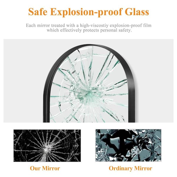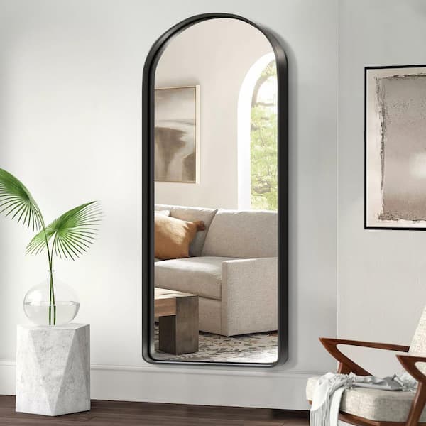 31 in. W x 71 in. H Arched Alloy Aluminum Framed Black Modern Floor Mirror