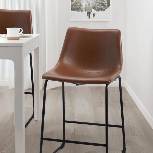 34 in. x 19 in. x 18.9 in. Walnut High Back Metal Frame Counter Bar Stool with PU Leather Faux Leather Seat (Set of 2)