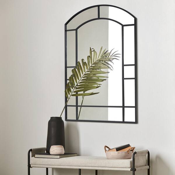 36 in. H x 24 in. W Modern Arch Metal Framed Black Wall Decorative Mirror