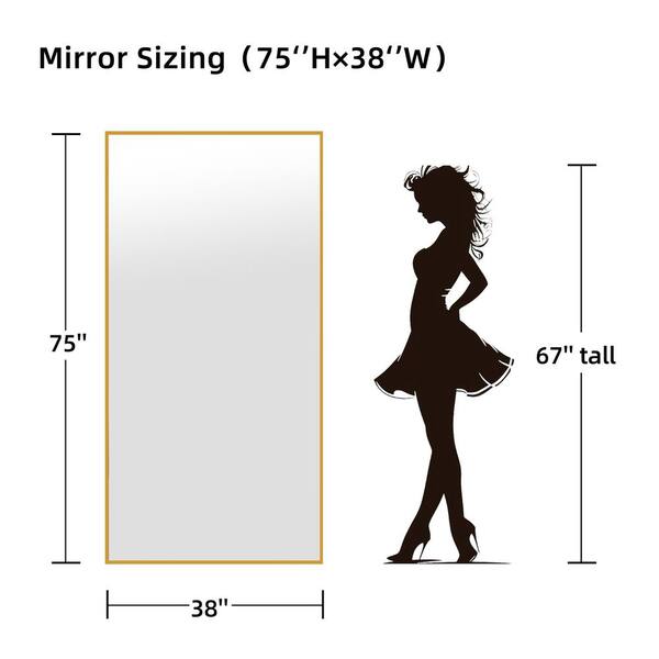 38 in. W x 75 in. H Modern Rectangle Metal Framed Gold Full Length Floor Mirror Standing Mirror
