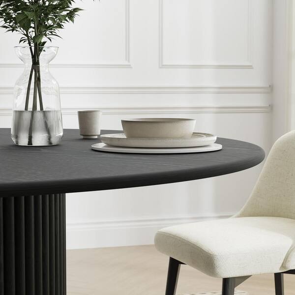 46 in. Oak Wood Black Column Pedestal Round Kitchen Table Dining Table Seats 4