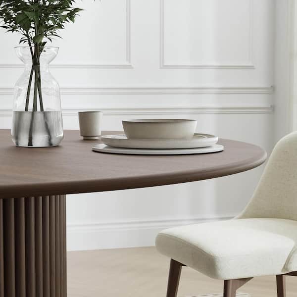 46 in. Walnut Oak Wood Color Column Pedestal Round Kitchen Table Dining Table Seats 4
