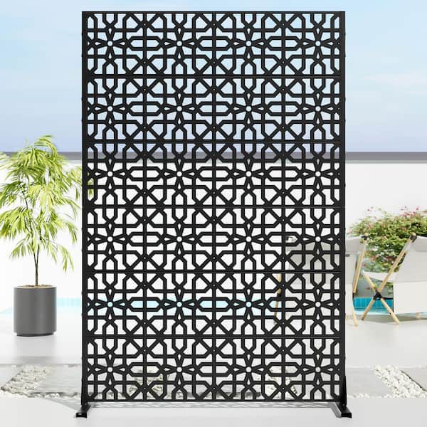 47 in. x 72 in. Black Textured Metal Garden Screens Outdoor Privacy Screen