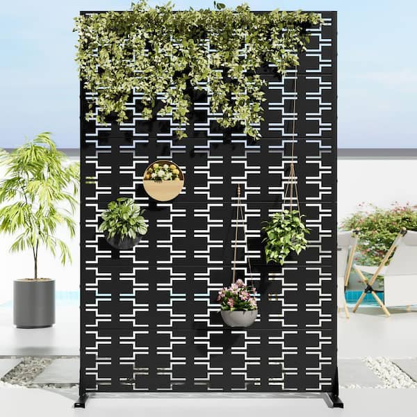 47 in. x 72 in. Black Textured Metal Garden Screens Outdoor Privacy Screen