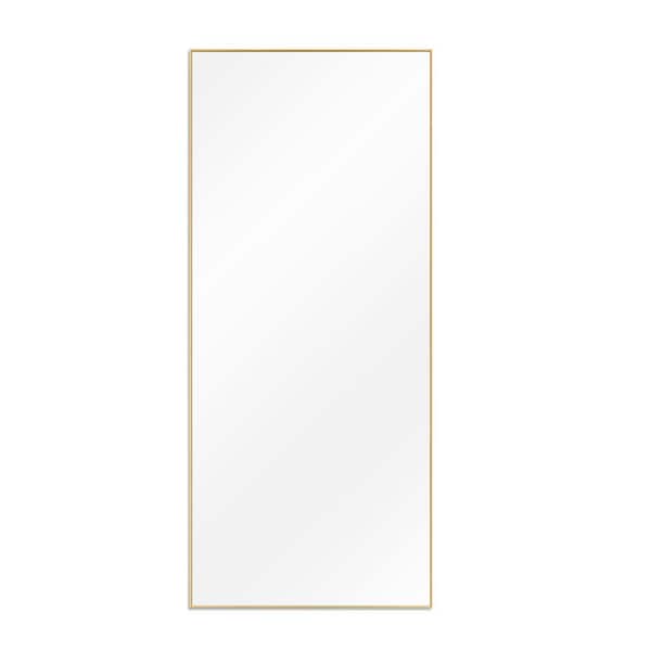 71 in. x 24 in. Modern Rectangle Framed Gold Full Length Leaning Mirror
