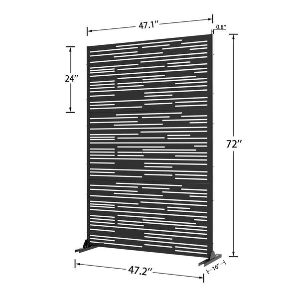 72 in. H x 47 in. W Galvanized Metal Wall Decal Outdoor Privacy Screens Garden Fence Louvered in Black