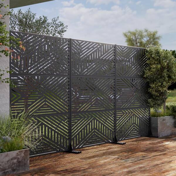 72 in. Ivan Metal Outdoor Garden Fence Privacy Screen Garden Screen Panels in Black