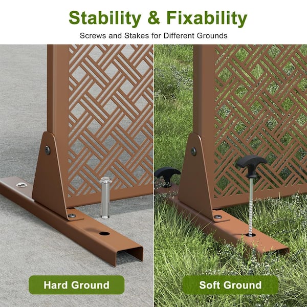 72 in. Jason Metal Outdoor Garden Fence Privacy Screen Garden Screen Panels in Brown