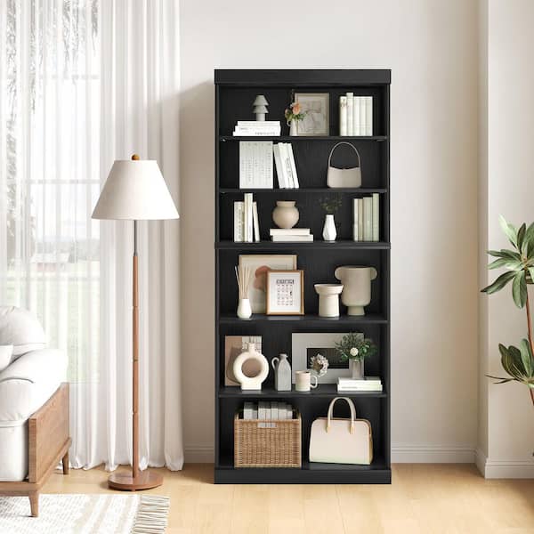 72 in. Tall Black Wood 6-shelf Standard Bookcase with Adjustable Shelves