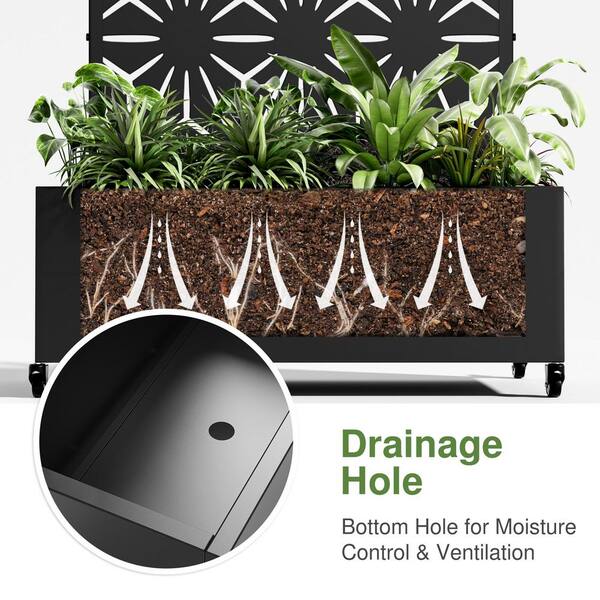 73 in. x 16 in. x 35 in. Black Metal Iron Planter Box with Attached Trellis for Climbing Vegetation